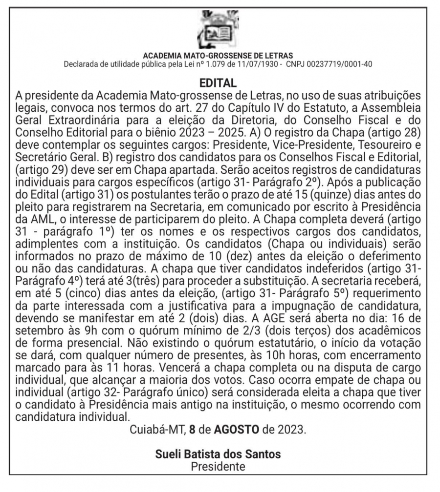 Para Eleição da Diretoria, do Conselho Fiscal e do Conselho Editorial para o biênio 2023 - 2025